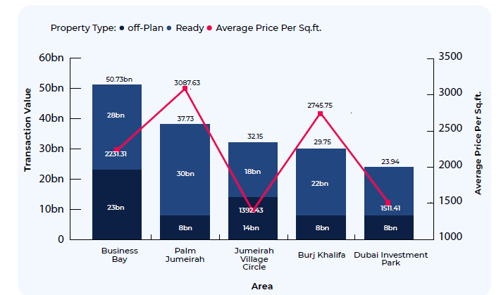 Transaction activity concentrated in high-liquidity, globally recognizable submarkets such as Business Bay, Palm Jumeirah, Jumeirah Village Circle, Burj Khalifa, and Dubai Investment Park. These areas benefited from strong connectivity, lifestyle appeal, and sustained demand from residents and international investors.